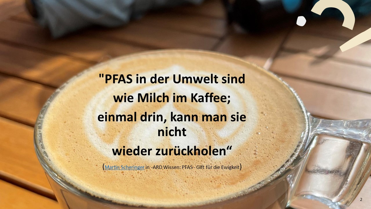 💦 Blog-Aktuelles: Ich blogge hier seit zwei Jahren regelmäßig über PFAS; in den verschiedenen Artikeln finden Sie die neuesten Informationen über PFAS, Zusammenfassungen, Jahresrückblicke, Glossen oder auch etwas über meine persönliche Fragen zu PFAS: "Was ist eigentlich mit PFAS und Kohlrouladen?"