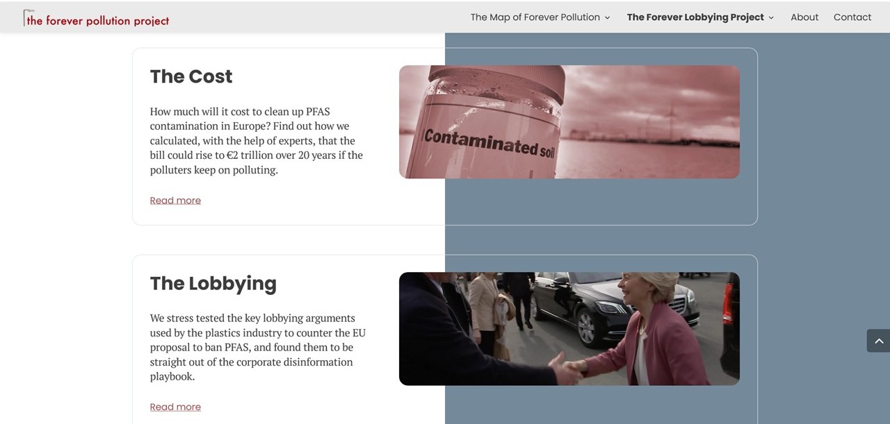 Im Rahmen des Forever Lobbying Project untersuchten Journalist:innen aus ganz Europa, wie die Chemieindustrie versucht, strengere EU-Vorgaben für PFAS zu verhindern. 46 Journalist:innen und 18 Expert:innen analysierten dafür mehr als 14.000 bislang unveröffentlichte Dokumente. Die Recherche deckte gezielte Lobbytaktiken auf – und das Team erhielt dafür im August 2025 den Helen Darbishire Award in der Kategorie Umweltschutz.